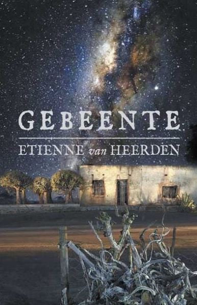 In Gebeente van Etienne van Heerden wordt dit proces bijzonder zichtbaar gemaakt. Al in de nota van de auteur wordt het dorp voorgesteld als “’n verbeelde dorp. Hy drijf op lig en is nêrens.” Deze zin benadrukt dat de fictieve ruimte niet gegrond is in realiteit of geografie, maar volledig afhankelijk is van de verbeelding van de lezer. Het dorp krijgt vorm door de manier waarop de verteller de lezer aanspreekt en begeleidt in het verbeeldingsproces. Van Heerden gebruikt de focus op een object, het huisje Opwyk, om de gedeelde aandacht van verteller en lezer te sturen. De aandacht van de lezer gaat – in een kijkende beweging – naar het huisje, het perspectief verandert soms. Soms zit je op de plaats die de verteller je aanwijst en kijk je naar het landschap dat van Heerden schetst, soms dwaal je af in metareflecties over het kijken. Je observeert hoe het landschap van de Karoo voor je geestesoog verschijnt. De velden, de vlakte, de bergen.