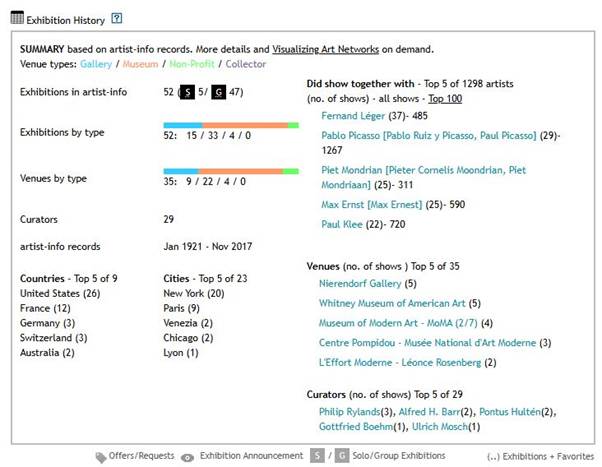 Op deze figuur, overgenomen van Artist info[2] zien we dat het werk van Ozenfant 25 keer werd tentoongesteld samen met werken van Max Ernst.